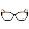Os óculos de grau Melaine todo em acetato têm um estilo icônico geométrico. Possui um design único e cores especificas para combinar com vários looks. Possui hastes pretas em acetato e sua frontal em acetato nas cores preto e marrom translúcido.