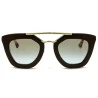 \n\n O Óculos de Sol Prada SPR 09Q tem um formato ousado. Este modelo possui formato quadrado com tonalidade marrom brilho, suas hastes possuem uma cor dourada e ponteiras marrom mesclado. É um óculos que não passa despercebido, para mulheres determinadas, ousadas e elegantes.
